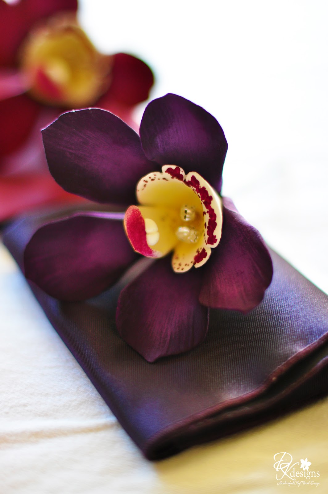 My 2nd cousin's good friend is getting married this coming weekend and Natana was very interested in the clay flowers I make. My cousin Danielle asked if I could help her. They had tossed around several ideas, but the final decision was to make cymbidium orchids in the colors of the 6 different fall colors the bridal party would be wearing. Mind you, I am always worried about having to do deep hued shades and worry whether it will turn out well. I'm happy to say that they almost perfectly match each of the pocket swatches Natana gave me to work from. While the orchids may not come in those colors in real life, I think they will be a perfect accessory for each of the bridesmaids.